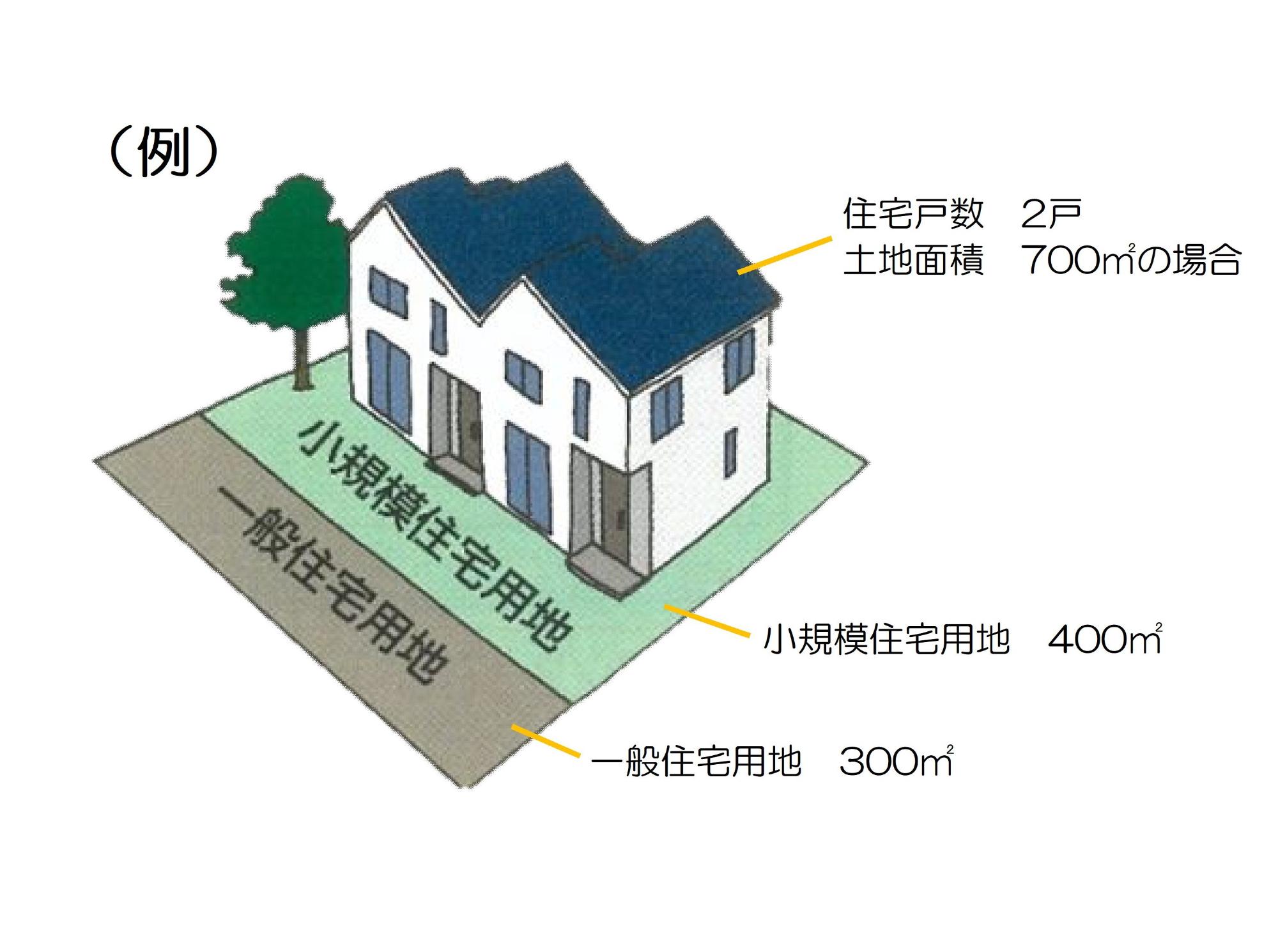 200平方メートル以下の住宅用地(200平方メートルを超える部分は住宅1戸あたり200平方メートルまでの部分)を小規模住宅用地といいます。